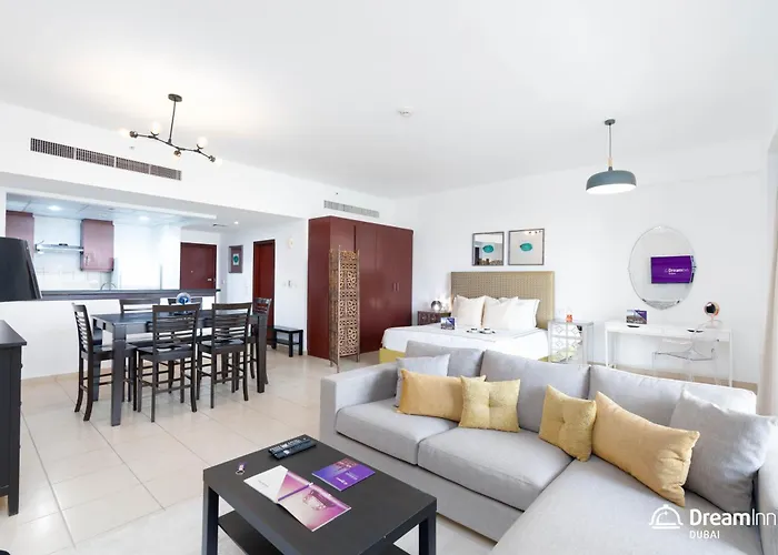 Die 70 m^2 großen Dream Inn Apartments - Rimal Jbr Dubai liegt im Stadtteil Strand & Küste von Dubai und bietet seinen Gästen WLAN und kostenlose Privatparkplätze. Gewerbepark Emaar befindet sich etwa 10 Minuten Autofahrt von der Unterkunft entfernt, und Fallschirmsprungzentrum Skydive Dubai ist in 3 km Entfernung von den 1-Zimmer-Apartments.